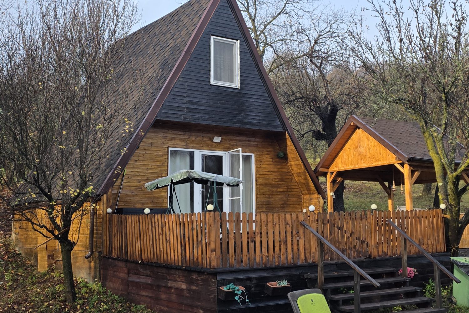 Cabana spatioasa si luxoasa conceputa pentru relaxare, amplasata intr-o livada, dispune de toate facilitatile necesare unui concediu reusit.