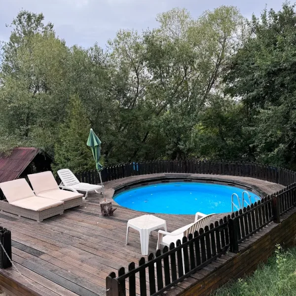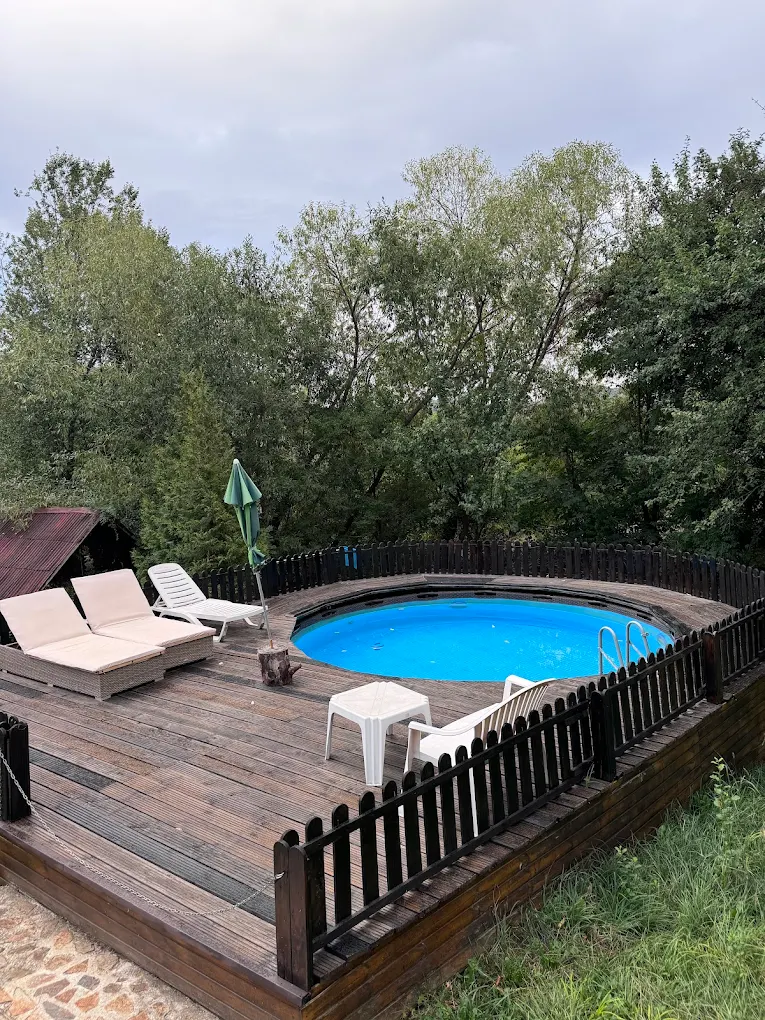 In exterior turistii au la dispozitie piscina, ciubar, gratar.