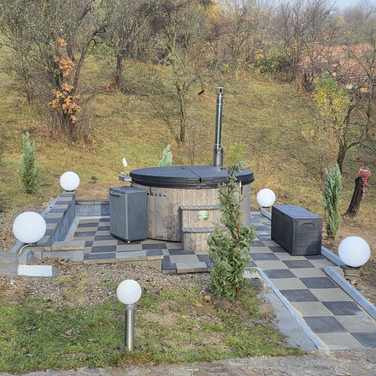 Oaspetii cazati la Cabana din Livada au la dispozitie in exclusivitate un ciubar modern cu capacitate mare, dotat cu instalatie de hidromasaj, aeromasaj si lumini ambientale.